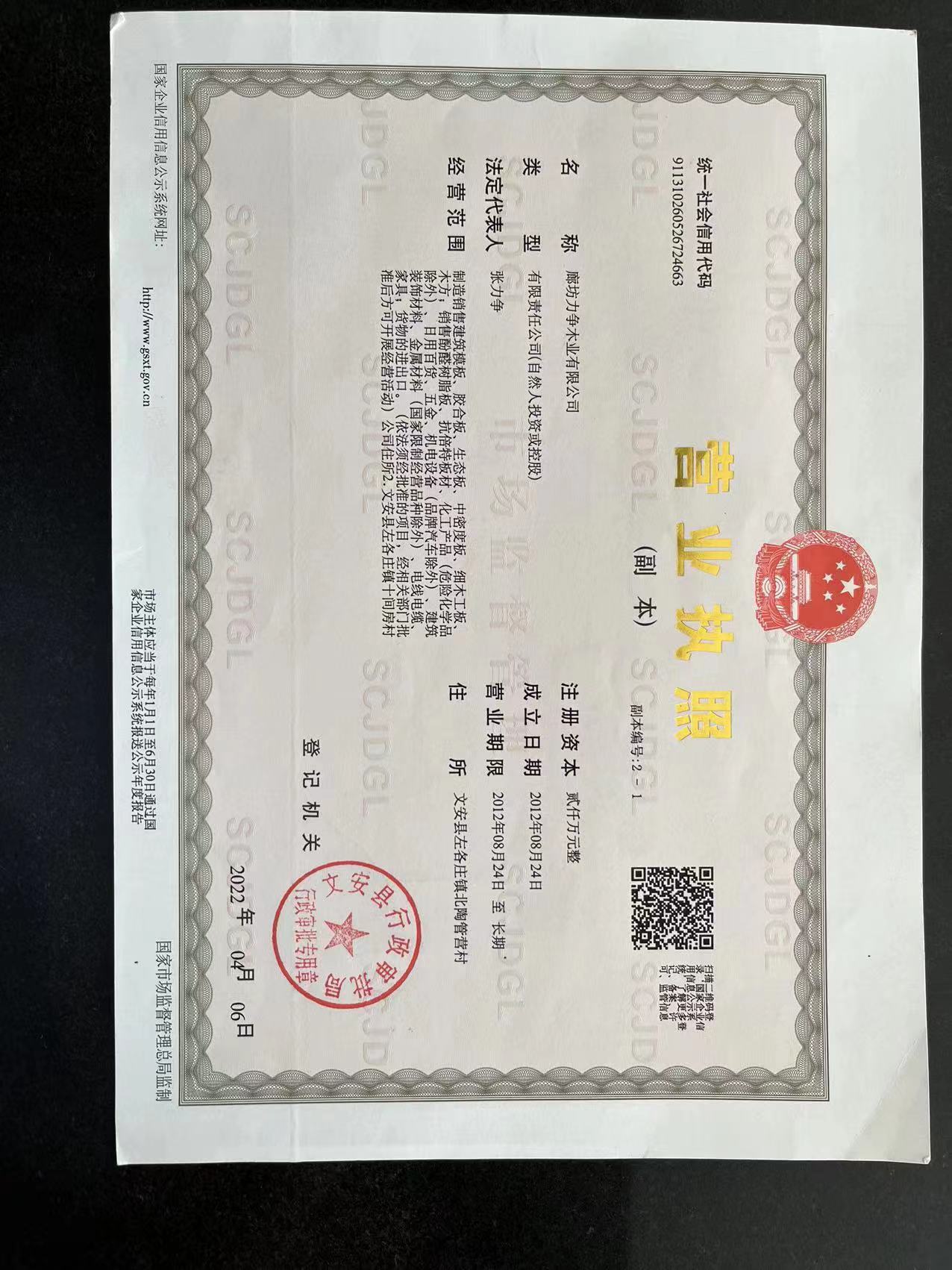 廊坊力爭木業(yè)有限公司創(chuàng)建于1995年,至今已有兩個生產(chǎn)基地。公司占地200畝,建筑面積6萬平方米。是華北地區(qū)生產(chǎn)各種規(guī)格清水模板的企業(yè)。坐落于河北集科研、生產(chǎn)、銷售于一體的膠合板市場左各莊鎮(zhèn)。公司不斷發(fā)展,逐漸擴大。于2006年公司遷入新址——南外環(huán)。地處京、津、保三角經(jīng)濟圈中心地帶,地理位置便捷。